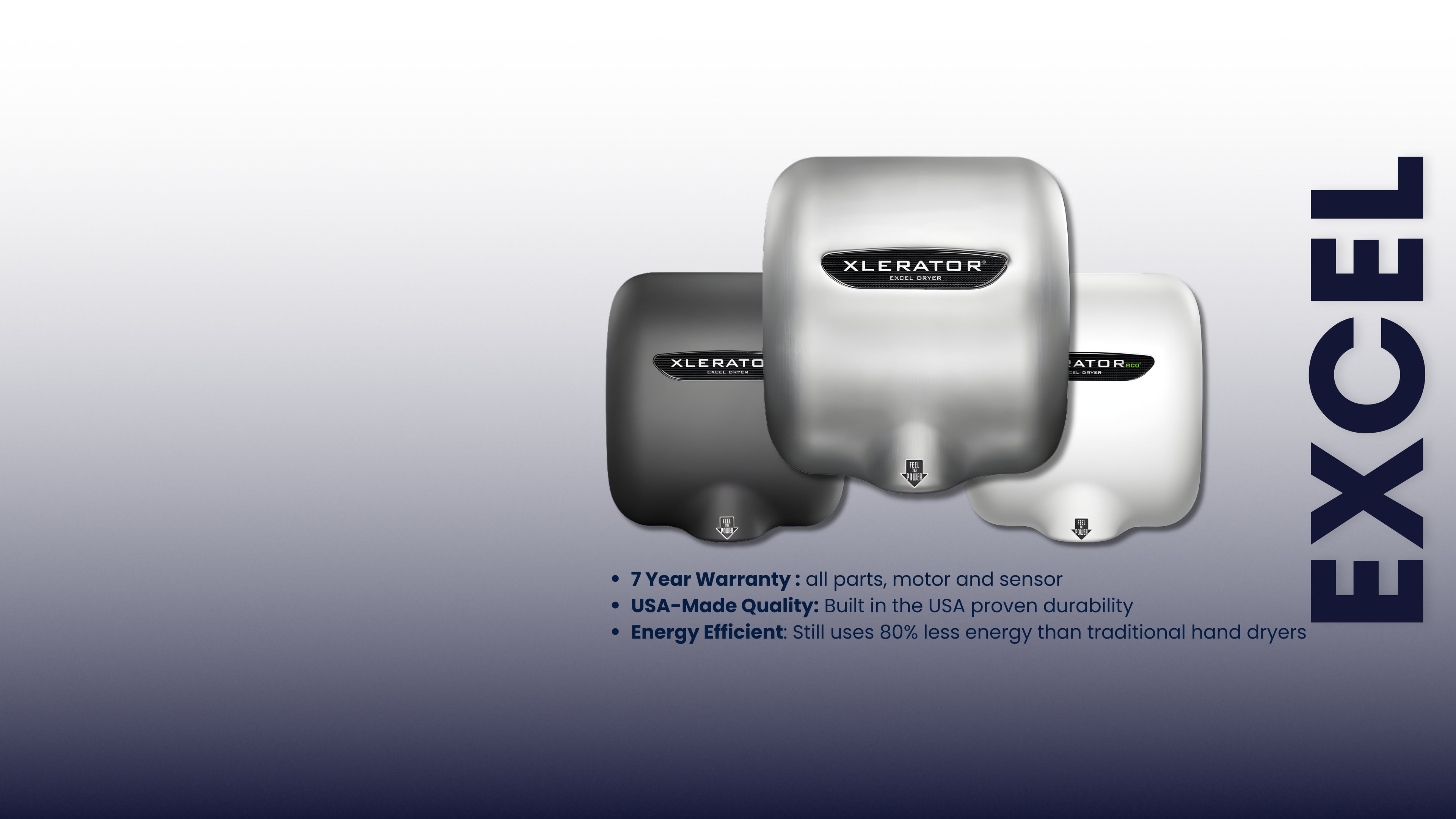 Experience the power, speed, and reliability of Excel Hand Dryers. The industry’s top choice for performance and efficiency in commercial restrooms.