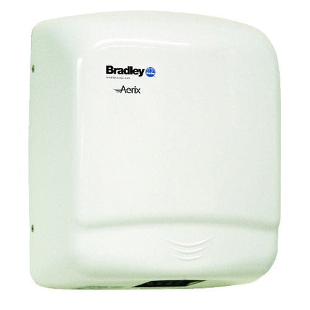 The Bradley 2905-2873 Aerix is a surface-mounted, sensor-operated commercial hand dryer designed for low to mid-traffic restroom environments where quiet operation and cost efficiency are priorities.