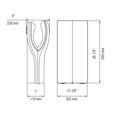 Dimensions: 26 1/8” H x 12 5/8” W x 9” D