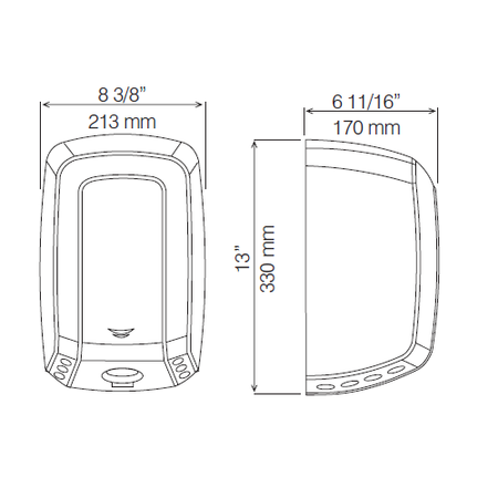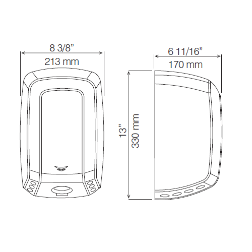 - Dimensions: 13” H x 8 3/8” W x 6 11/16” D