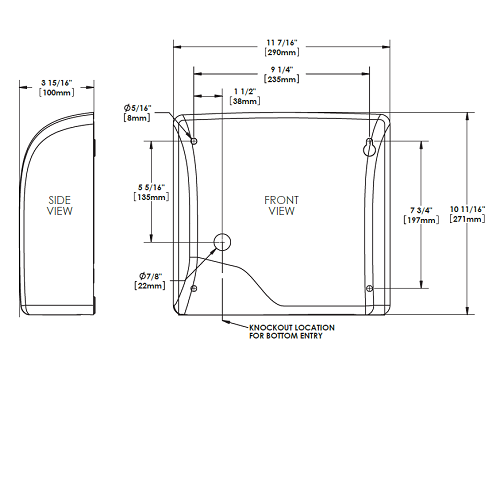 The World Dryer L-974A SLIMdri™ hand dryer is a surface-mounted ADA compliant commercial hand dryer engineered for projects requiring slim wall projection and dependable drying performance. With a compact 3.9-inch depth, the L-974A is designed to meet the ADA 4-inch protrusion requirement when installed properly.